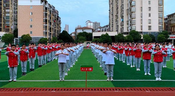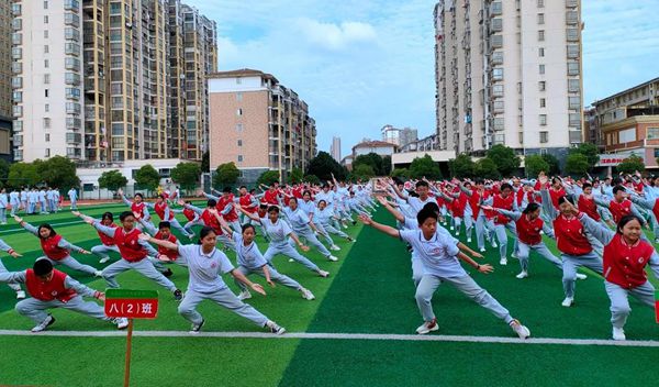為豐富學(xué)生的文體活動(dòng),增強(qiáng)學(xué)生身體素質(zhì),培養(yǎng)學(xué)生團(tuán)結(jié)拼搏的精神,提高學(xué)生的思想文化品德水平,規(guī)范學(xué)校、班級(jí)、組織紀(jì)律觀念,宣揚(yáng)中國(guó)傳統(tǒng)文化,5月31日下午,南昌現(xiàn)代外國(guó)語(yǔ)象湖學(xué)校初一初二全體師生齊聚操場(chǎng),隆重舉行五步拳比賽。校長(zhǎng)王禮琴、副校長(zhǎng)王桂紅、張水秀、曹蕓等校領(lǐng)導(dǎo)蒞臨比賽現(xiàn)場(chǎng)觀看表演。