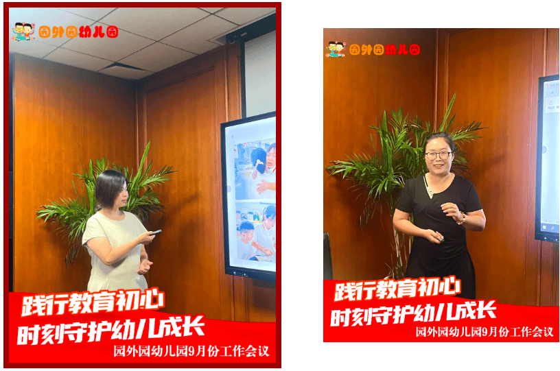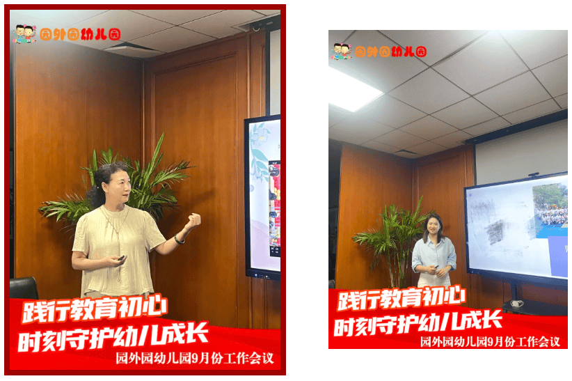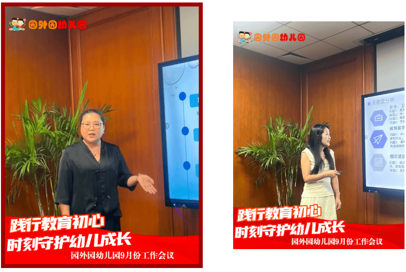 其次,各園長就如何提升教學水準、如何更好踐行園外園“三育·四愛”課程等議題展開討論,同時幼教管理部副總監紀靈潔、品質管理部副總監王佳麟就各園所存在問題提出建議。