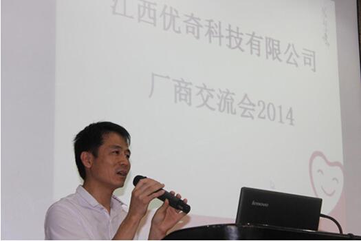 6月26日,江西優奇科技有限公司2014年“社會變、行業變,我如何變?”廠商交流會暨新產品發布會在南昌隆重舉行。來自全國各地的代理商和經銷商等近百位嘉賓參加了此次發布會,與優奇科技精英團隊一起見證新產品“優痢奇”的成功上市。
