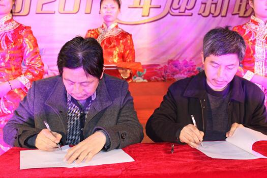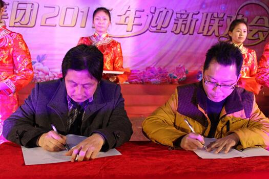 在聯歡會演出正式開始前,特別安排了集團2015年經營工作目標責任狀簽訂儀式,集團董事長胡樂平分別與集團總部各部門負責人及下屬各單位代表簽訂了2015年度經營目標責任狀。
