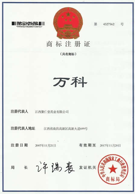 在多年的生產經營中,聚仁堂藥業注重以品牌為主導、以客戶為先導、以質量建品牌,積極培育和推廣企業自主知識產權的品牌,樹立了良好的企業和產品品牌形象。本次商標證注冊的取得將為公司后續戰略發展布局提供有力的支持和保障,聚仁堂藥業將以仁義之心做中成藥為原則,建立起涵蓋藥品、保健品等產品和服務范疇的多元化商標品牌體系,確立和推廣企業“健康”、“優質”的品牌宗旨和理念,以通過品牌效應促進企業新的跨越式健康發展。