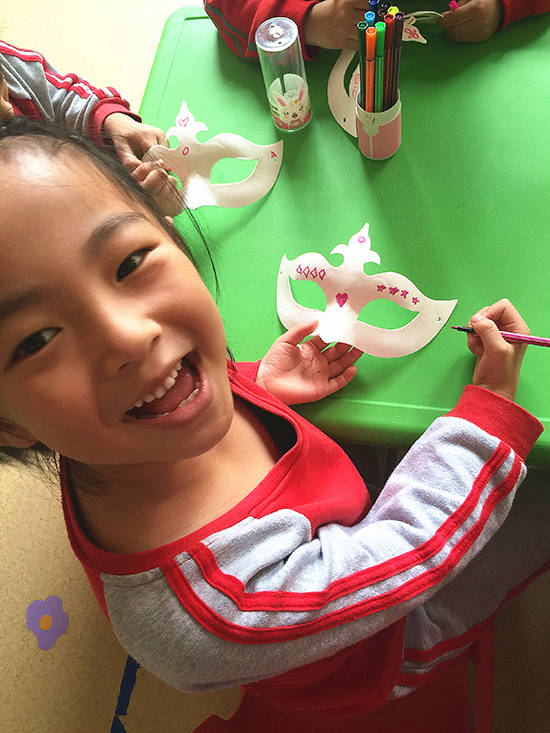 這是來自大一班的小美眉畫的面具哦!看她笑的多開心,我想你會(huì)是畫得最好看的那一個(gè)哦~