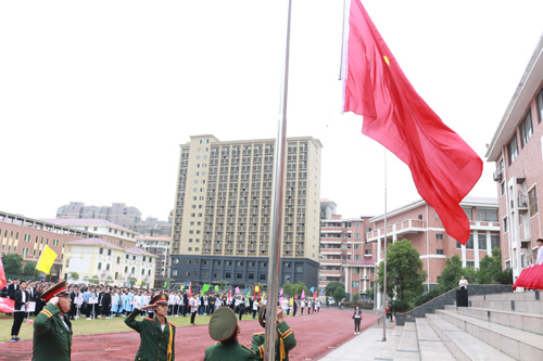 國歌奏畢,國旗飄揚。省教育廳督導專員兼學院黨委書記周瑾同志向全體師生莊嚴宣布江西省工商職業技術學院第七屆田徑運動會正式開幕。