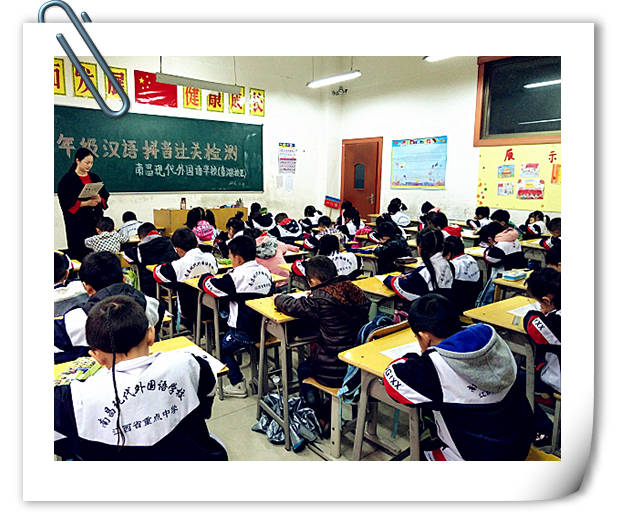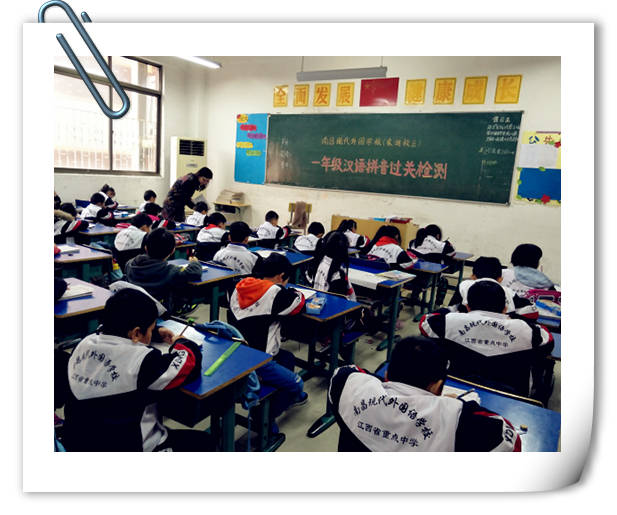 漢語拼音在語文學(xué)習(xí)中起著重要的作用,它是幫助小學(xué)生識字、學(xué)習(xí)普通話的有效工具。為了檢驗一年級學(xué)生的漢語拼音學(xué)習(xí)情況,幫助學(xué)生正確發(fā)音,夯實語文學(xué)習(xí)基礎(chǔ),11月9日上午,南昌現(xiàn)代外國語學(xué)校(象湖校區(qū))舉行了一年級學(xué)生漢語拼音過關(guān)測試活動。