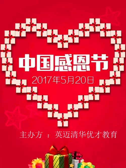 我們都知道,中國自古就不缺感恩精神,感恩讓教育更美麗,2017年5月20日,英邁優才教育520感恩節大會即將拉開大幕,屆時,將有100組家庭與會,共同見證這樣一個特別的感恩時刻。