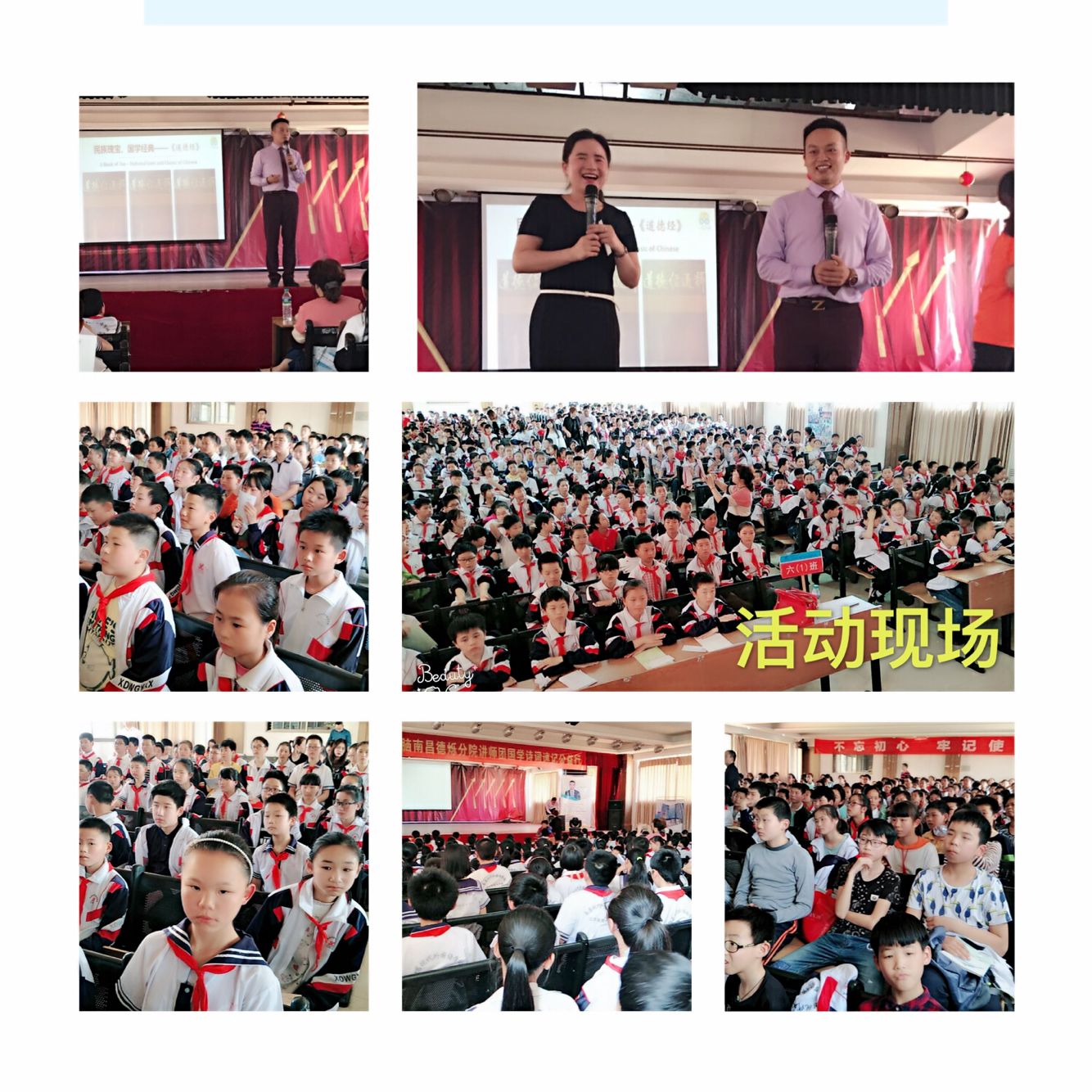 活動開始,由主持人帶領500多名學生做熱身健腦操,然后介紹活動由才智大腦首席導師、世界記憶大師教練何智力老師擔任指導老師。何老師走上講臺,采取互動的形式,讓學生隨意指出《道德經》任何一章,何老師能馬上能說出在哪一頁并背誦出具體內容,就連隨機屏顯的頁碼,他也能說出是哪章節并迅速背出具體內容。世界記憶大師的風采令在場的師生們傾慕不已,現場不約而同地響起雷鳴般的掌聲。