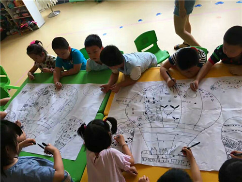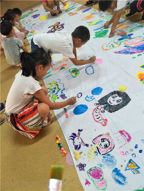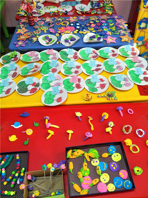 藝術節的作品形式多樣:有趣味彩泥、線描畫、蠟筆畫、水粉畫、創意美工作品等等。作品內容豐富,極富創意,展示了幼兒在本學期興趣班的成長與收獲。孩子最喜歡玩,喜歡游戲。通過生動形象的語言,以游戲的形式開展教學,把繪畫寓于游戲中,是幼兒園主要的教學方法。如在進行蠟筆畫教學中讓幼兒游戲的方式進行構圖,在涂色方面指導孩子學習了相似色、漸變色等多種涂色方法。創意粘土手工制作活動讓孩子們盡情發揮想象力,用五顏六色的黏土捏出自己所想要的形狀與造型。