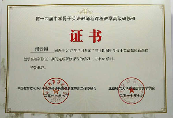 本次活動中,南昌高中英語教師們也碩果累累,在現場教學設計大賽、論文評比等項目中都獲得了優異的成績:一等獎3名,二等獎5名,三等獎6名。其中南昌現代外國語學校的施云霞老師獲得了一等獎的好成績。在此祝賀施云霞老師取得好的成績,同時也希望她在今后的工作中能再接再厲,把該校的教育教研工作帶上一個新的臺階。
