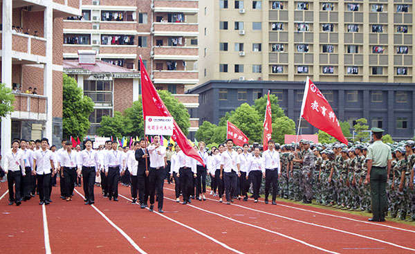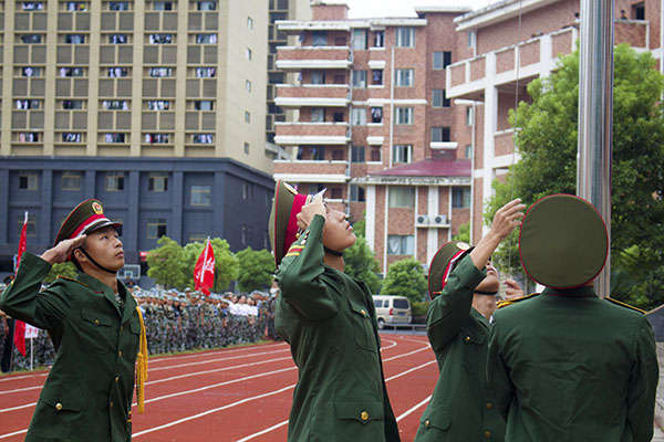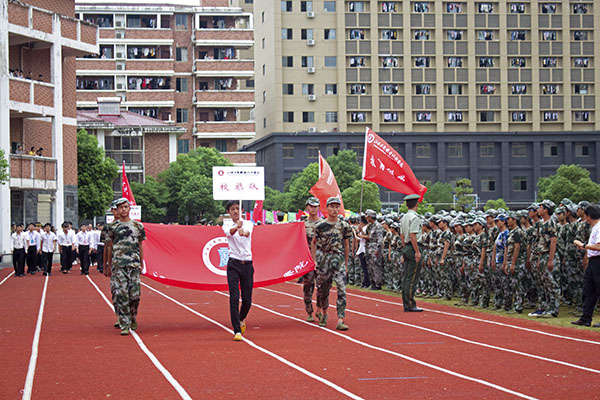 伴隨著莊嚴(yán)的國(guó)歌聲,五星紅旗冉冉升起,在操場(chǎng)上空迎風(fēng)飄揚(yáng)。隨后是全校軍訓(xùn)新生分批進(jìn)行隊(duì)列匯報(bào)表演,統(tǒng)一的迷彩裝,整齊的步伐,體現(xiàn)了工商新生在新學(xué)期飽滿的熱情和積極的態(tài)度。院長(zhǎng)劉明初走到學(xué)生方隊(duì)中進(jìn)行檢閱。一句句嘹亮的口號(hào)聲響徹云霄,一組組方陣從主席臺(tái)前經(jīng)過,同學(xué)們個(gè)個(gè)精神飽滿,軍姿挺拔,在教官的帶領(lǐng)下邁著整齊的步伐昂向前,出色的表現(xiàn)不時(shí)贏得現(xiàn)場(chǎng)領(lǐng)導(dǎo)和老師的陣陣掌聲。