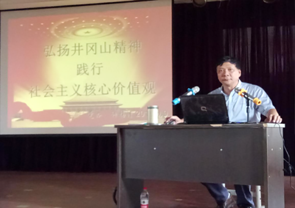 講座圍繞以下三個方面展開:一、社會主義核心價值觀的主要內(nèi)容;二、跨越時空的井岡山精神與社會主義核心價值觀;三、培育和踐行社會主義核心價值觀的意義和路徑。