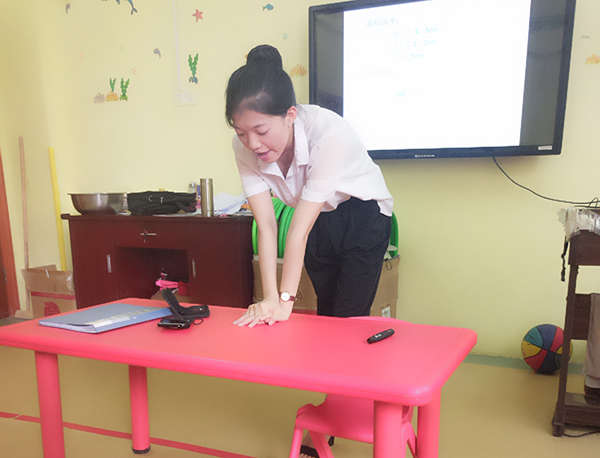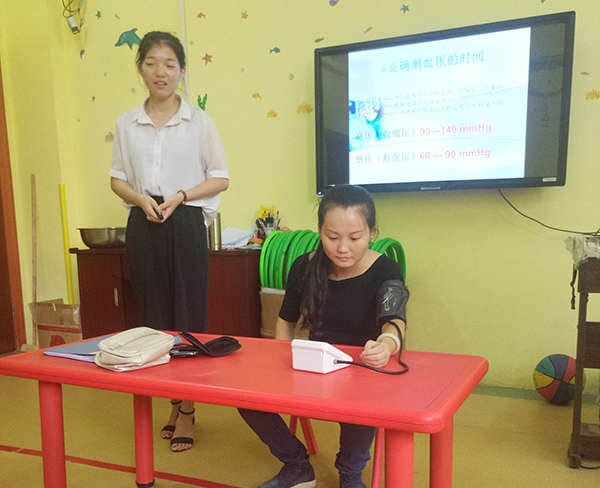 程老師通過一個個實例,為大家講解如何為心肺復蘇搶救以及它的作用和專門針對的對象和實施者的要求、創傷急救等知識。關注到教師們教育的對象——幼兒年齡的特殊性,程老師又重點講解了幼兒心肺復蘇術和成人心肺復蘇術的不同之處及應重點注意的方面,并通過現場模擬示范,詳細地進行了心肺復蘇的動作演練,教師們也紛紛參與,進行模擬操作。