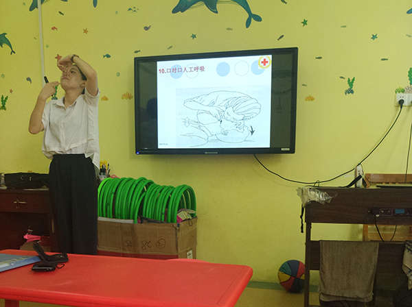 為加強幼兒園安全工作的管理,提高每位教職工的安全教育意識,使教師能在幼兒園突發事件中運用一些簡單易行的急救知識進行急救,保證幼兒有一個安全、健康的成長環境,近日,迪斯尼金沙園組織全體教職工開展了急救知識培訓活動。幼兒園特邀請了江西省全員健康中心的程老師為大家講解“現場救護知識”。