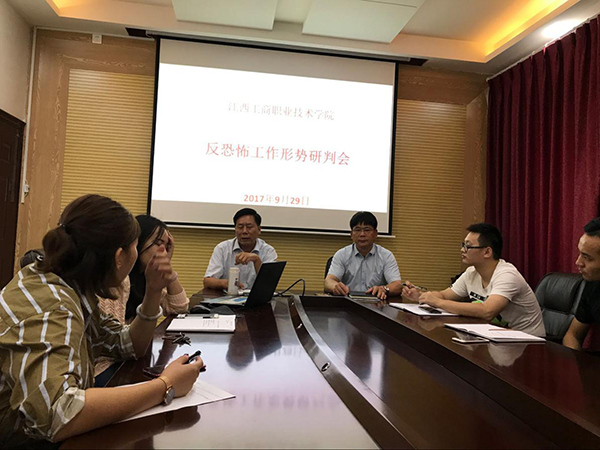 在江西工商學(xué)院喜迎黨的十九大勝利召開(kāi)的日子里,該校保衛(wèi)處舉辦了反恐怖工作形勢(shì)研判會(huì)。2017年9月29日下午在行政樓第二會(huì)議室,聚集了來(lái)自各系部和相關(guān)處室的反恐怖工作聯(lián)絡(luò)員,學(xué)院領(lǐng)導(dǎo)黨委副書(shū)記、副院長(zhǎng)傅江海出席了這次研判會(huì)。