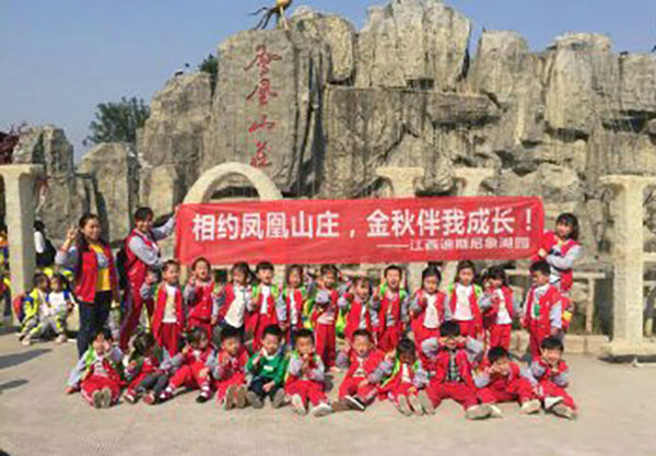 金風送爽,花果飄香,秋天豐富而多彩,它是個豐收的季節,是個處處都蘊涵著教育契機的季節。大自然是孩子們最廣闊的教室,賦予孩子們取之不盡的源泉。在金色的秋季,為了讓幼兒充分感受到集體外出時的興奮和喜悅,尋找和觀察秋天的美景,江西迪斯尼·象湖園特意開展了此次以“相約鳳凰山莊,金秋伴我成長”的秋游主題活動。