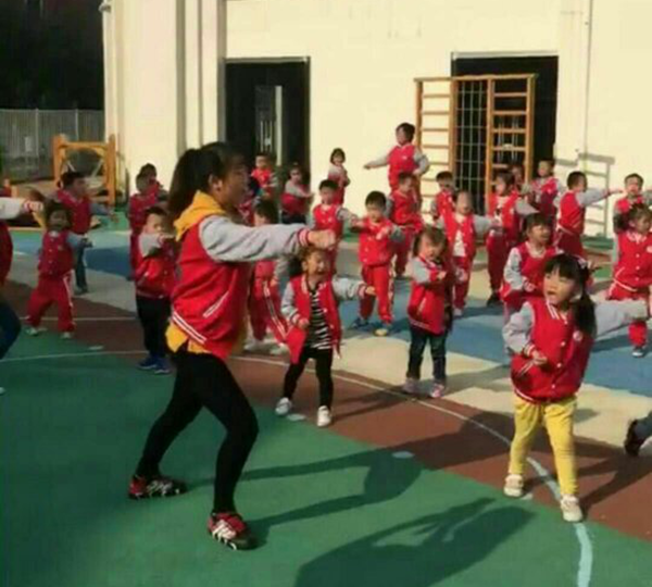 在整個評比中老師們能夠至始至終以飽滿的精神感染幼兒,清晰的口令、規范的動作無不給以幼兒鼓舞和信心。如:中大班小朋友的認真、嚴謹;小班小朋友的自由、奔放;老師的親切、自然的情緒感染了幼兒們,使幼兒積極投入到早操的活動當中。同時各班教師還能在活動前將幼兒衣、褲、鞋等不便活動的因素給予排除,讓幼兒輕便活動、特別是幼兒整齊的著裝,像一朵朵小花,這更能展示出幼兒精神抖擻,從而有效地激發了幼兒參與活動的興趣。老師和孩子們都樂在其中。