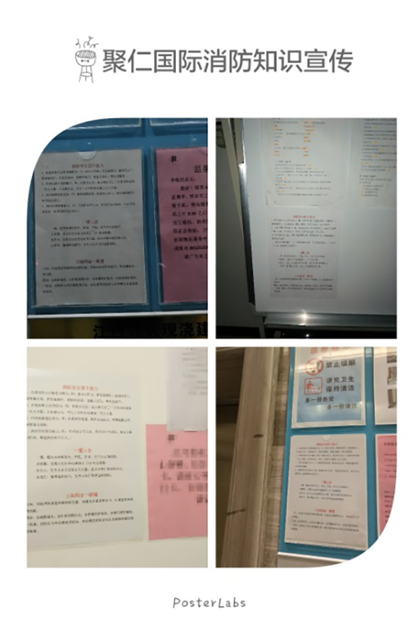 對客戶和業主開展以“認識火災、學會逃生、主動防范、保障安全”為主要內容的安全教育,在聚仁國際綜合樓、6號樓大樓門口張貼宣傳標語,并且聯系媒體在大堂電子屏滾動播放消防宣傳視頻。