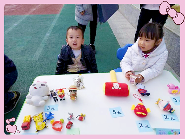 為了讓勤儉節(jié)約習(xí)慣在幼兒時(shí)代養(yǎng)成,迪斯尼朝陽(yáng)園舉行園內(nèi)“跳蚤市場(chǎng)”活動(dòng),讓小朋友把自己用過(guò)的玩具和還成色比較新還能繼續(xù)使用的衣物等擺上貨架,供園內(nèi)的同學(xué)選購(gòu),讓孩子們?cè)诮灰字袑W(xué)會(huì)談價(jià)、計(jì)算和物盡其用不浪費(fèi)的好習(xí)慣。孩子們都非常踴躍積極地做起了小老板,你出2元,我還1元,跳蚤市場(chǎng)的小朋友買(mǎi)賣(mài)人都非常認(rèn)真和開(kāi)心!