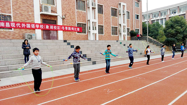 為更好的開展冬季體育運動,增強學生的體質(zhì),培養(yǎng)學生團結(jié)、拼搏的精神,12月27日下午,南昌現(xiàn)代外國語學校(象湖校區(qū))小學部舉行了一場“跳出健康、跳出快樂”為主題的冬季跳繩比賽。
