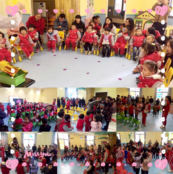 一大早,家長就和孩子們一起來到幼兒園跟老師一起組織孩子進行晨間鍛煉。隨后各班在特色活動奧爾夫音樂中拉開了教學成果展示的序幕,老師分別通過與孩子和家長進行各種游戲的方式,將包括語言、數學、健康、禮儀、科學、社會、藝術、趣味識字、快樂英語、DIY手工等內容對家長們進行了展示。孩子們大膽的自我展現,活潑可愛的表情贏得了在場家長的熱烈掌聲。最后的活動過程中場面溫馨感人,家長和孩子其樂融融,忙得不亦樂乎,一張張笑容燦爛的面容,吃著一個個香溢滿口的餃子,別樣的元旦喜慶連連。