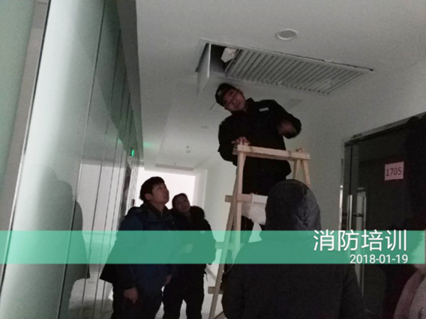 在對小區樓棟安全檢查的同時,睿府物業也加強對員工的安全工作教育,1月19日上午,公司請來北大青鳥的工作人員為我們進行了消防設施設備使用培訓,工程部、客服部、秩序部的主管及領班和所有監控員一起參加了此次培訓,培訓中大家認真學習,積極提問,現場操作。
