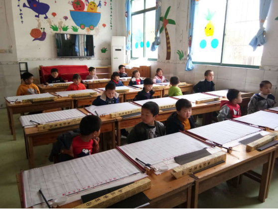 總園長張燕平親自給兩園小朋友授課,從一首詩、一幅畫教會他們識漢字、念古詩,以及筆畫書寫。由于是啟蒙訓練,從選紙張、筆墨到坐姿、執筆,從點劃到線條、從線條到單字結體,均有嚴格的要求,小朋友人人都能認真去領會和模仿。