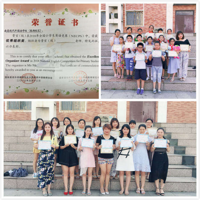 本次競(jìng)賽,南昌現(xiàn)代外國(guó)語(yǔ)象湖學(xué)校經(jīng)過(guò)初賽選拔,共69名學(xué)生進(jìn)入決賽。從初賽到?jīng)Q賽短短一個(gè)月的時(shí)間,由英語(yǔ)教研組長(zhǎng)負(fù)責(zé)組織有針對(duì)性地進(jìn)行輔導(dǎo),老師之間經(jīng)常在一起相互交流輔導(dǎo)方法,商討難題,并做到每天跟家長(zhǎng)溝通與交流,讓家長(zhǎng)配合督促孩子在家完成復(fù)習(xí)任務(wù)。功夫不負(fù)有心人,在決賽中,有九名學(xué)生獲得了國(guó)家級(jí)獎(jiǎng);有18名學(xué)生獲得市級(jí)一等獎(jiǎng);35名學(xué)生獲得市級(jí)二等獎(jiǎng);8名教師獲得“全國(guó)優(yōu)秀指導(dǎo)教師”光榮稱號(hào);學(xué)校榮獲全國(guó)小學(xué)生英語(yǔ)競(jìng)賽(NECPS)優(yōu)秀組織獎(jiǎng)。本次比賽獲得優(yōu)異成績(jī),是對(duì)參賽學(xué)生刻苦學(xué)習(xí)的肯定,是輔導(dǎo)老師辛勤指導(dǎo)的回報(bào)。
