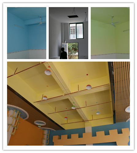 ? ? 色彩搭配小改造,教室地面、墻面、吊頂全部更新。根據教室的年級不同、功能不同,墻面刷上了不同的顏色,如小班用紅色,中班用綠色,大班用藍色;暖黃色的午睡室,紫色的舞蹈室,綠色的閱讀區等。既可以幫助幼兒建立集體意識,又能形成歸屬感。