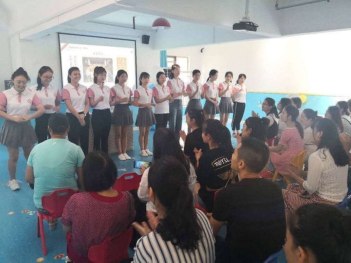 其次,園外園·君悅園的教師集體亮相,并一一向家長(zhǎng)做自我介紹。開(kāi)頭的是我們尼尼一班的班主任李老師,她擁有豐富的經(jīng)驗(yàn)和強(qiáng)大的氣場(chǎng),依次是斯斯一班、斯斯二班、迪迪一班、迪迪二班、優(yōu)優(yōu)一班。當(dāng)最后一位老師介紹完,家長(zhǎng)們響起了熱烈的掌聲。