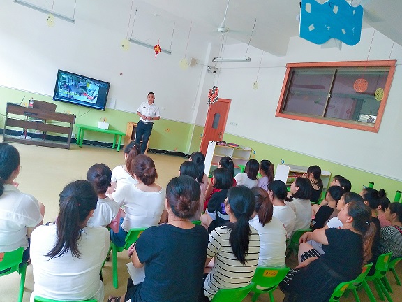 為進一步提高幼兒教師的消防安全意識和自防自救能力,全面推進校園消防安全宣傳工作,8月29日下午2點,園外園·芳草園特邀消防部門李教官,到園區對全體教職工開展一次圖文并茂的消防安全知識培訓。