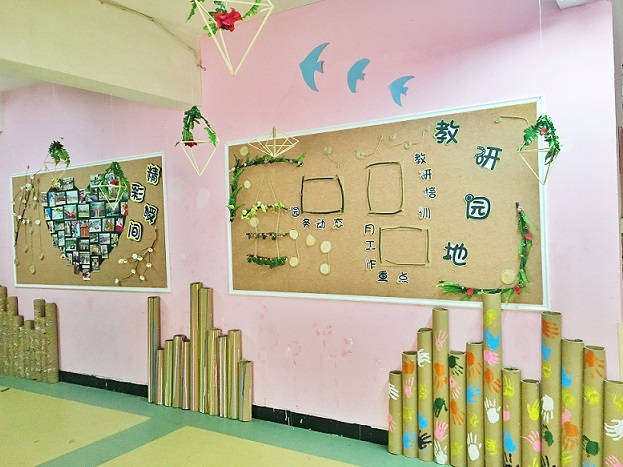隨后,各班教師根據幼兒年齡特點、教學主題內容,結合有限的空間,大膽構思、精心創設,利用豐富多樣的材料,創設出了各具特色的室內環境、形式各異的主題墻、溫馨的家園互動欄及幼兒感興趣的特色功能室和彰顯韻味的走廊文化等。