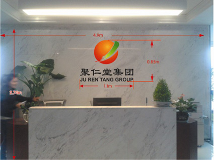 首先,電梯出口的形象墻設計至關重要,是集團對外展示的第一個窗口,此外,這一區域的設計還應起到一個指引的作用,告訴來賓集團所處的方位。所以,集團文宣部對此處的風格定位以簡單大方,采用豎式的LOGO,并下面擺一些盆栽作為襯托。辦公區前臺的布置將直接影響來賓對集團公司的整體印象,此處設計應當大氣,采用的也是豎式的LOGO設計方案,與電梯出口處的設計相統一,但在材質上將采用有厚度的亞格力板,LOGO設計將采用噴漆的形式表現出紅綠色漸變的感覺,可以使整體感覺比較立體,既有厚度,顏色上也有變化,與前臺灰色紋理大理石的墻面形成對比。