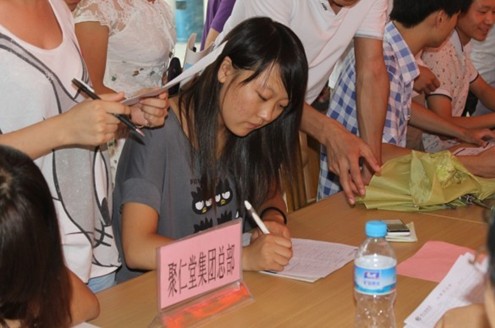 有了上午的體驗,在下午的招聘現(xiàn)場,更是人頭攢動。學(xué)生們熱情高漲,多家單位的招聘人員被大家團(tuán)團(tuán)圍住。前來參加招聘會的同學(xué)手中幾乎都拿了多份簡歷,他們認(rèn)真地詢問與自己專業(yè)對口的崗位并慎重地將簡歷投向心儀的企業(yè)。經(jīng)濟貿(mào)易系的張珍同學(xué)說:“這次學(xué)院舉行實習(xí)招聘推介會,為我們提供了大量實習(xí)崗位,對我們來說是一次選擇就業(yè)極好的機會。參加招聘會的招聘,對我們也是一次就業(yè)招聘的實際鍛煉,我一共投了3份資料,特別看中聚仁堂集團(tuán)總部的財務(wù)審計助理崗位,想去試試。”
