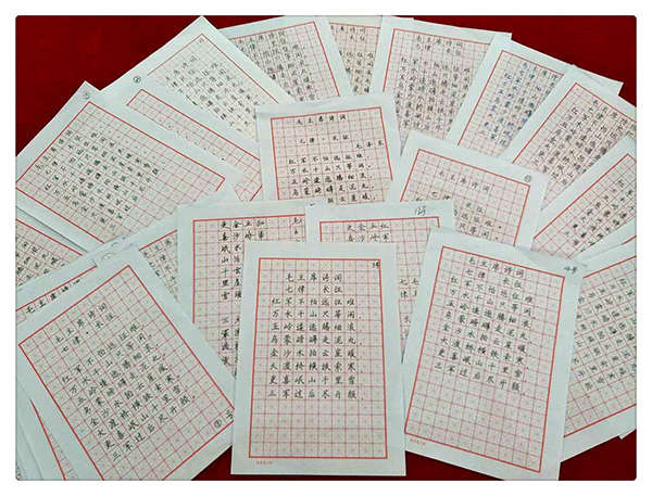 組織教師參加兩校聯賽活動,主要是以賽帶練,促動廣大教師投入到大練教學基本功的活動中去,兩校教師相互學習,取長補短,增進友誼,賽出水平,展示教師與時俱進的精神風貌。用教師自身的書寫素養為學生做表率,讓學生在潛移默化中養成良好的書寫習慣。