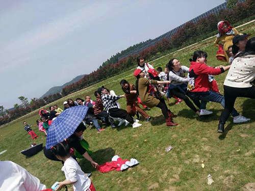 除了親子游園,家長和小朋友們還在老師的組織下開展了豐富多彩、趣味性極濃的親子游戲,如:“車輪滾滾滾”“袋鼠跳跳跳”“拔河”等等。在整個活動中爸爸、媽媽們熱情高漲,孩子們龍騰虎躍,歡呼聲此起彼伏,和諧的氣氛拉近了教師與幼兒、家長的距離。