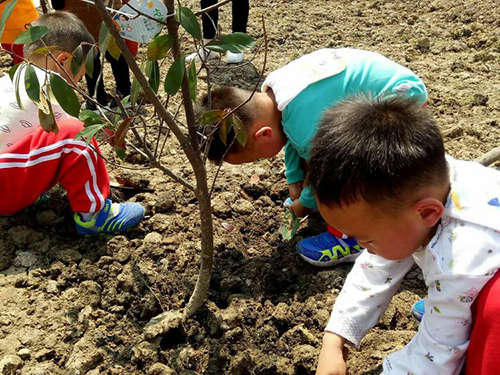 看著自己親手栽植的樹苗在春風中吐露著翠綠的嫩葉,大家都非常興奮。種好樹苗后,小朋友們紛紛將寫有自己姓名和心愿的小卡片掛在了小樹苗上,希望小樹能茁壯成長。