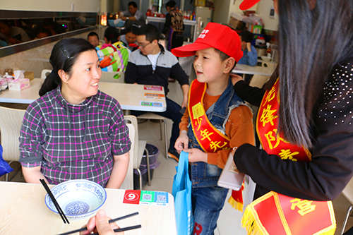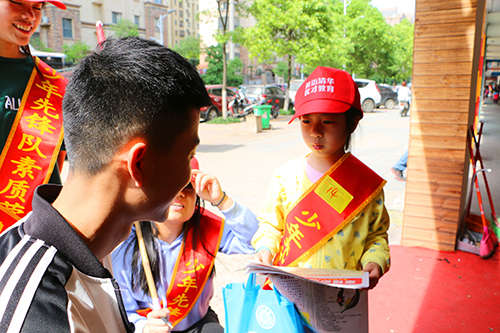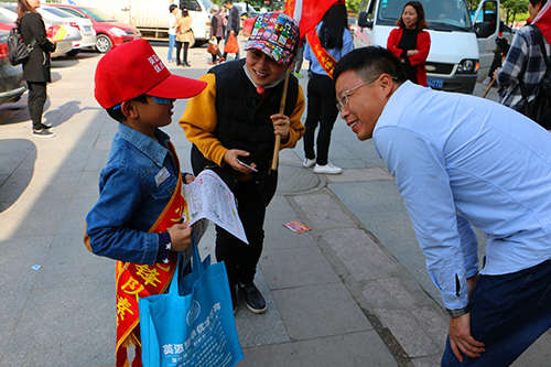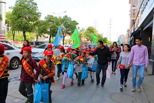 活動中,不是每一個小朋友天生就擅長與人溝通,有些孩子怯于開口,總想躲在家長的后面,遲遲不敢邁出第一步,不敢大聲開口招呼路人;有的孩子也遇到路人根本不會停下匆忙的腳步聽你講話,也有人聽完后只是微微一笑走開。滿腔的熱情卻被現(xiàn)實潑了一盆冷水,讓小朋友感受一下挫折教育,增強(qiáng)一下抗壓力也是此次活動的一筆巨大收獲。
