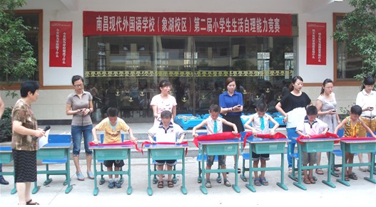 6月26日下午,南昌現(xiàn)代外國語學(xué)校(象湖校區(qū))舉辦了第二屆小學(xué)生生活自理能力競賽。比賽開始前,各班選出的小選手們個(gè)個(gè)摩拳擦掌、躍躍欲試,拉拉隊(duì)的助威聲也在比賽場上此起彼落,好不熱鬧!